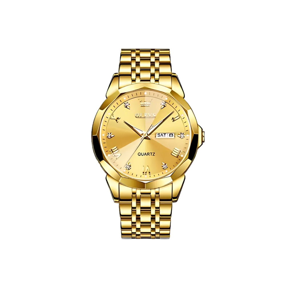 Upptäck en perfekt kombination av lyx och funktion med denna OLEVS herrklocka i guldfinish. Designad med fokus på både estetik och prestanda, erbjuder den rostfria stålremmen en tidlös elegans samtidigt som quartzverket säkerställer pålitlig precision.